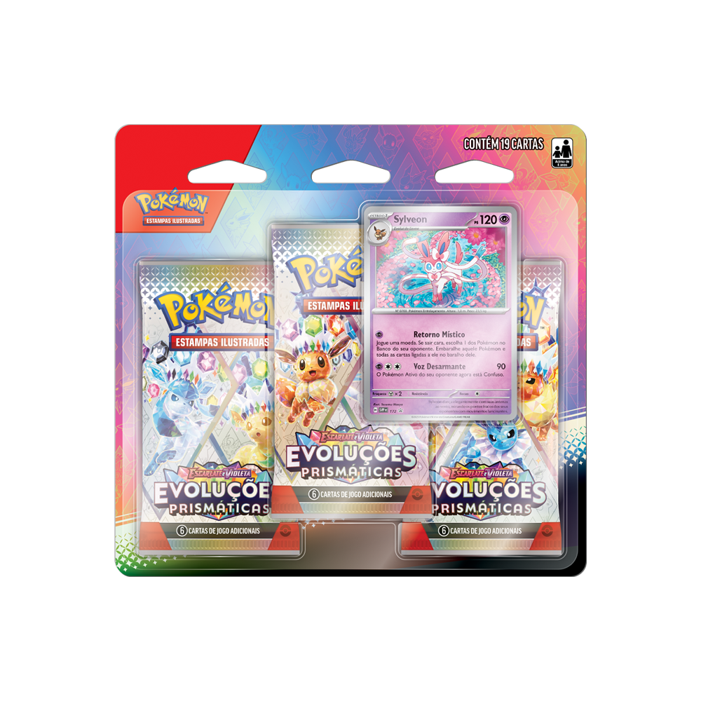 O Blister Triplo Pokémon Escarlate e Violeta Evoluções Prismáticas Sylveon reúne tudo o que um jogador ou colecionador procura em um produto oficial do Pokémon Estampas Ilustradas. Com três pacotes da coleção Evoluções Prismáticas, você amplia suas chances de encontrar cartas raras, holográficas e possíveis destaques competitivos do meta atual.