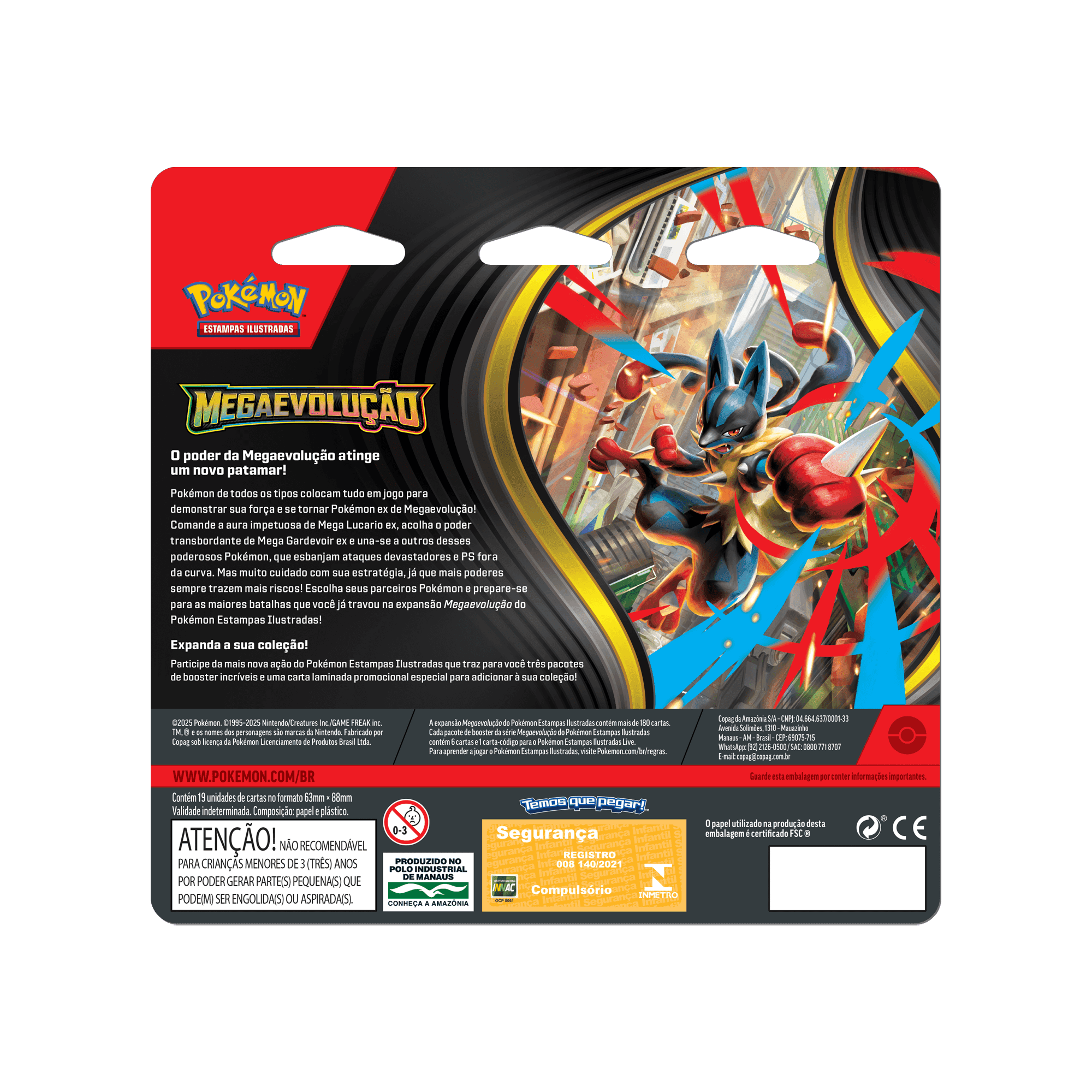 • Três boosters lacrados da coleção Mega Evolução, aumentando suas chances de boas aberturas